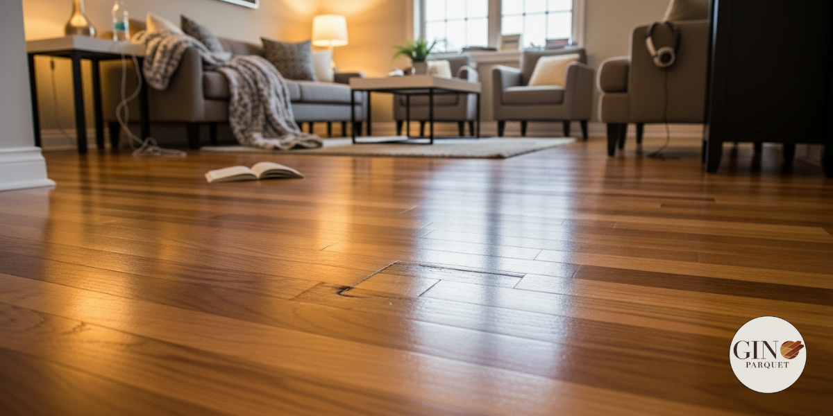 Humedad, desgaste y levantamiento de tablas comprometían la estética y seguridad del ambiente. Este fue el punto de partida para una reparación integral.
