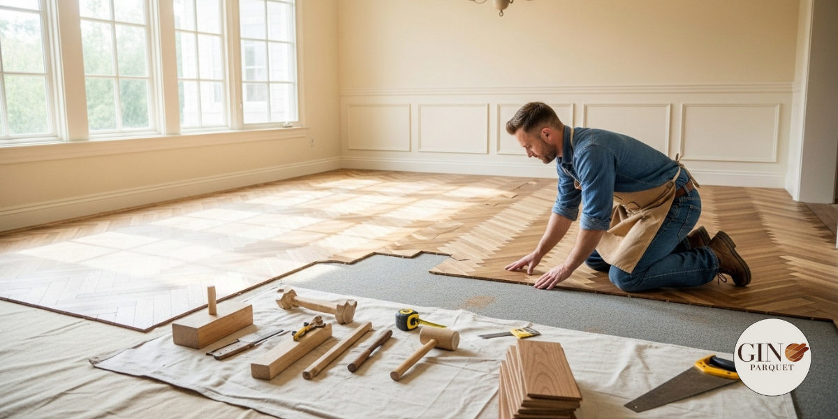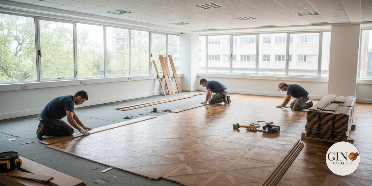 Colocamos parquet en espiga para un look elegante y duradero en espacios de alto tránsito.